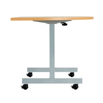 This economical mobile flip-top table has a hard-wearing MFC top and silver legs with black castors. The table nests for easy storage when not in use.