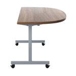 This economical mobile flip-top table has a hard-wearing MFC top and silver legs with black castors. The table nests for easy storage when not in use.