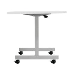 This economical mobile flip-top table has a hard-wearing MFC top and silver legs with black castors. The table nests for easy storage when not in use.