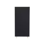 This upholstered floor standing screen is designed to be durable and economic. It is black with a white trim. It measures W1200 x H1800mm.