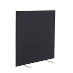 This upholstered floor standing screen is designed to be durable and economic. It is black with a white trim. It measures W1400 x H1200mm.