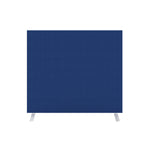This upholstered floor standing screen is designed to be durable and economic. It is blue with a white trim. It measures W1400 x H1200mm.