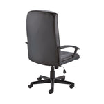 This plush executive chair is upholstered in black leather look material and features a high back for support and comfort. The lock tilt mechanism allows you to adjust the height and angle of the seat via a single lever for comfort for up to 8 hours. This chair comes on a five castor base for mobility.