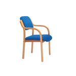 This chair is a great addition to any reception area; combining comfort, style and reliability. The chair has a stylish wooden frame with integrated armrests and is stackable up to 4 high for convenient storage. The padded seat and back are upholstered in blue pyra fabric and the chair complements other furniture from the Jemini Reception Seating range.