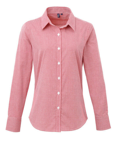 Customise Your Premier Workwear Ladies Gingham Microcheck Long Sleeve Shirt - PR320M