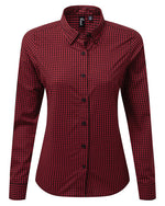 PR352MBLK/REDLPremier Workwear Ladies Maxton Check Long Sleeve Shirt - PR352M