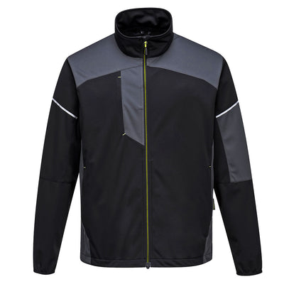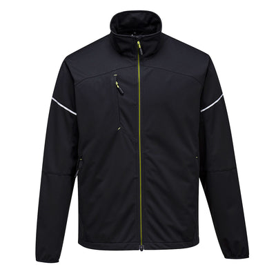 Stylish work jacket made from our dynamic Flex Shell fabric. This style offers excellent performance with incredible comfort. A sleek minimal design, longer length back, ergonomically shaped sleeve, quick dry cuffs, low profile zips and reflective trims ensure a contemporary look. Three generously sized external pockets provide ample storage.