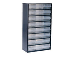 The Raaco 1224-02 Metal Cabinet has 24 x 150-02 drawers, each drawer can be divided into 3 compartments. The cabinet is made of painted steel and the drawers are made of polypropylene (PP).