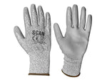 These Scan Grey Polyurethane Coated Gloves are fitted with a 13 gauge, cut 3 resistant, knitted seamless liner. The palms and fingers are coated with polyurethane. They are suitable in cutting environments such as wood and glass, and also suit a laboratory as a protective glove.