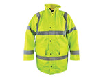 This Scan High-Visibility Yellow Waterproof Motorway Jacket with taped seams and retro-reflective tape, conforms to EN 471 Class 3 and also to EN 343 for protective clothing against foul weather.