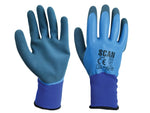 The Scan Waterproof Latex Gloves offer both warmth and water resistance. They have been double dipped in latex for excellent abrasion resistance. The 15g nylon liner and elasticated knitted cuff help keep your hands warm.