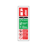 This sign details safe applications for carbon dioxide fire extinguishers. Simple to understand, using recognisable symbols and a universal colour scheme, this sign keeps employees, customers and visitors informed in the event of a fire. This self-adhesive sign measures 300 x 100mm.