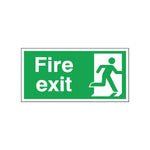 Use this sign to indicate the position of the fire exits, leaving no confusion in an emergency. The universally recognisable symbol and sign is professional and functional, clearly displaying the fire exits to customers, visitors and employees. This self-adhesive sign measures 150x300mm.