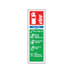 This sign details safe applications for dry powder fire extinguishers. Simple to understand, using recognisable symbols and a universal colour scheme, this sign keeps employees, customers and visitors informed in the event of a fire. This self-adhesive sign measures 300 x 100mm.