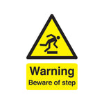 This sign has been designed to warn customers, employees and visitors to beware of tripping, in order to prevent accidents and injuries. The universal symbol and recognisable yellow and black colour scheme instantly categorises this as a warning sign on sight, keeping employees and others informed and safe at work. The handy self-adhesive backing makes this sign easy to fix to most surfaces without the need for tools. This sign is A5 in size.
