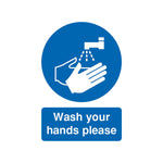 To comply with health and safety regulations it is imperative that all visitors, customers and employees are encouraged to wash their hands. Suitable for use in washrooms, kitchens and food preparation areas this sign reminds users of hygiene standards with clear, concise text. The universal symbol and recognisable blue and white colour scheme instantly categorises this as a mandatory sign on sight, keeping employees and others informed and safe at work. The handy self-adhesive backing makes this sign easy to fix to most surfaces without the need for tools. This sign is A5 in size.