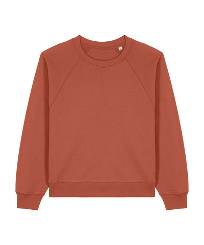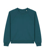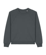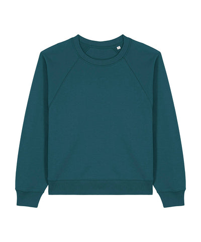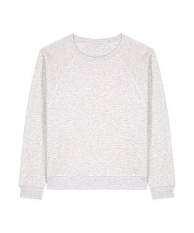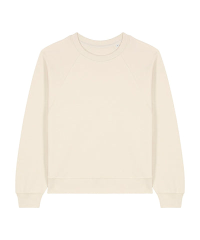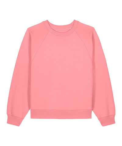 Premium women’s raglan crew neck sweatshirt in 100% organic cotton. 300gsm French terry. Excellent printability. Aligns with iconic mid-light styles.