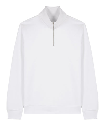Premium, unisex, quarter-zip sweatshirt in 85% organic cotton and 15% recycled polyester. Medium fit, 280gsm. Ideal for corporatewear. Excellent printability.