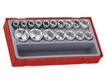 This Teng Tools 17 piece Socket Set consists of regular 6-point, 1/2in Drive sockets. The sockets are made from chrome vanadium steel for strength and durability and have a satin finish. They are supplied complete in a handy storage tray.