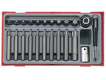 This TTX23 socket set consisting of 20 regular and long bits for internal TX heads. It also includes 2 adaptors and a 2mm Hex mini screwdriver.