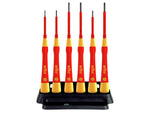 4 x VDE Slotted Fine Screwdrivers: 1.5 x 50mm, 2.0 x 50mm, 2.5 x 65mm & 3.0 x 65mm.
