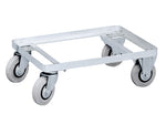 The Zarges W150 Dolly Trolley for transporting Eurobox containers. two fixed and two swivel action castors (each 125x40mm), roller bearings and rubber tyres.